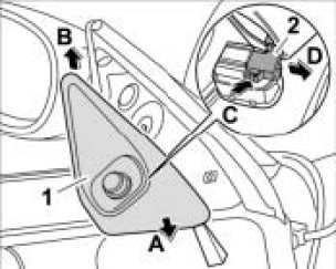 1. Carefully lever out trim panel for mirror triangle -1- using plastic wedge -Arrow A- and pull upwards -Arrow B-.