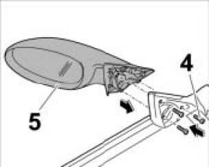 1. Unscrew fastening screws -4- and remove mirror housing -5-.