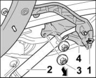 1. Position hinge for top box cover -4- on the body and secure with the fastening nuts 3. Tightening torque 7.2 ftlb.