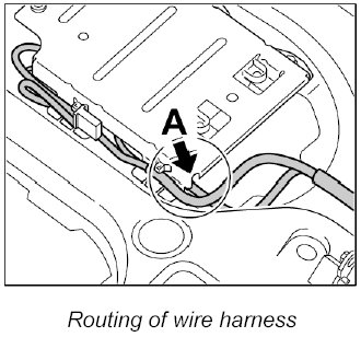 The wire harness must not be routed over the cover, but should be laid along side the cover -A-.