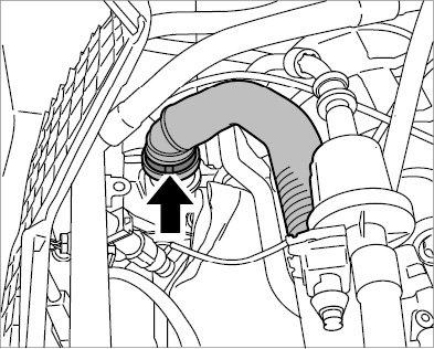 4. Fit and tighten Torx screw (M6 x 12) to secure holding clamp on vent line -arrow-. --> Tightening torque: 7.5 ftlb.