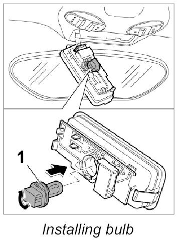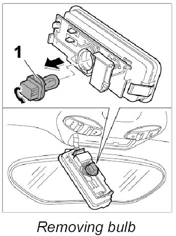 1. Loosen bulb holder with bayonet lock -1- from the interior light -direction of arrow- and remove it.