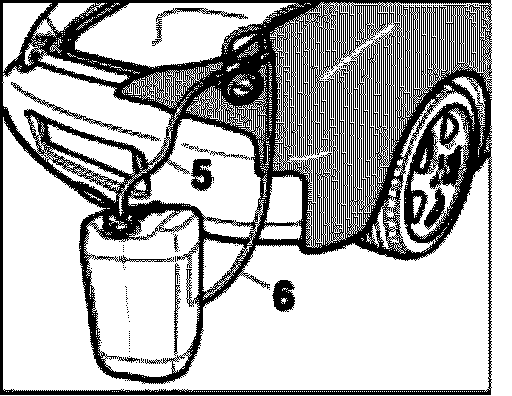 7. Push the filler hose of the vacuum pressure gauge-5- onto the canister connection. Draw off the return line-6- of the Venturi nozzle into a second container.