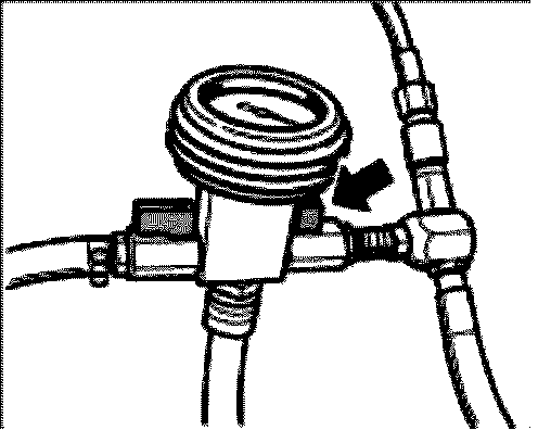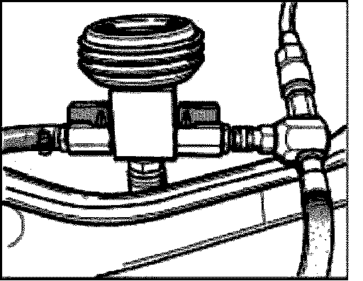 4. Connect vacuum pressure gauge of bleeder tool to the flexible extension. When doing so, ensure that both shutoff valves are closed (positioned at 90° to flow direction).