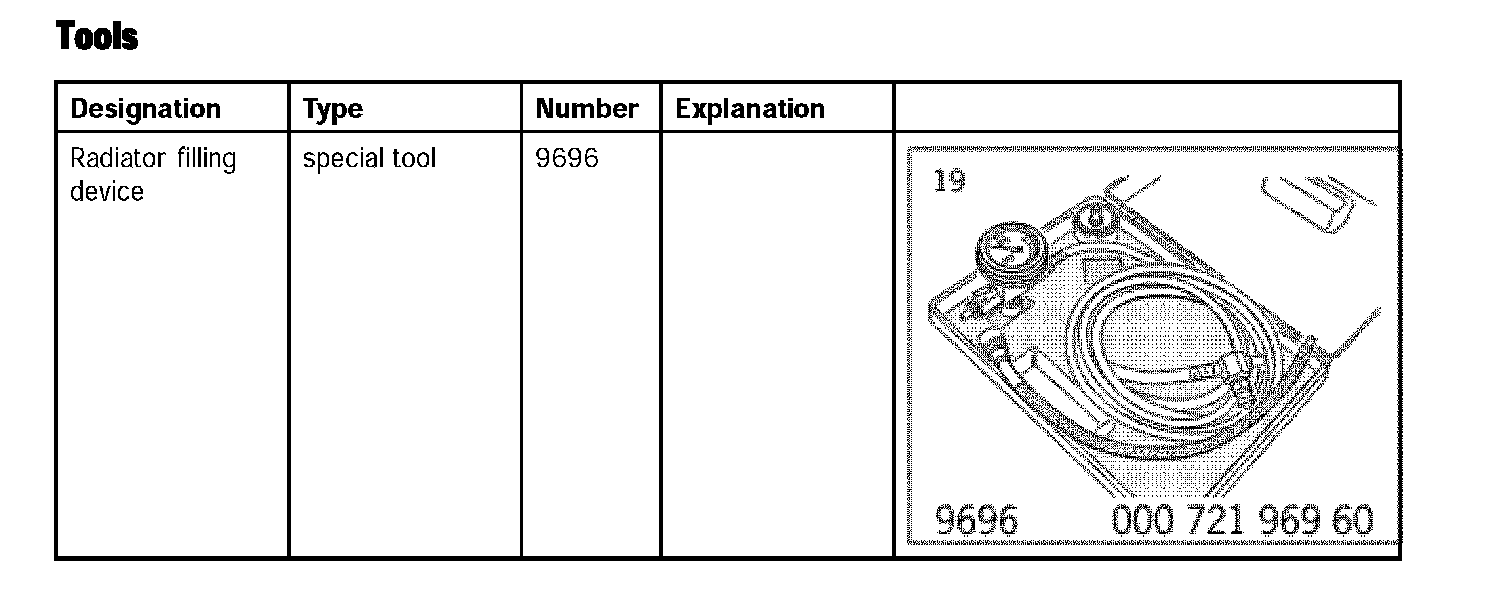 Note: The process of filling and bleeding the cooling system continues to be performed using the special tool Radiator filling device 9696.