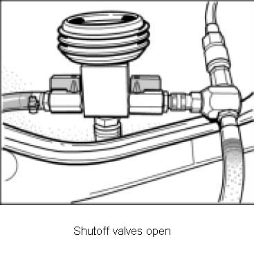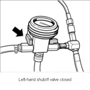 9. Open both shutoff valves on the vacuum pressure gauge until the transparent filler hose has completely filled with coolant.