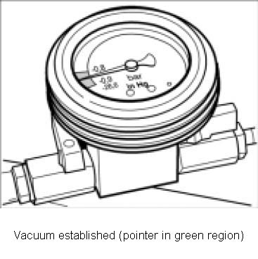 ^ When the pressure gauge pointer is in the green area of the display scale, a sufficient vacuum has been built up.