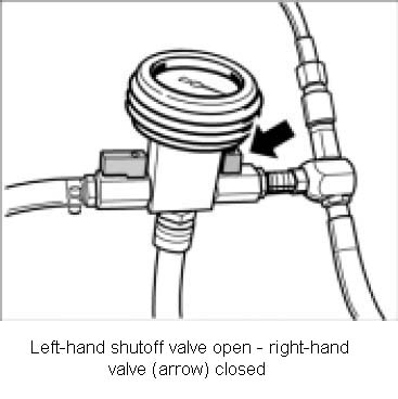 11. When there is enough vacuum in the cooling system, close right shutoff valve and subsequently unplug the compressed air supply.