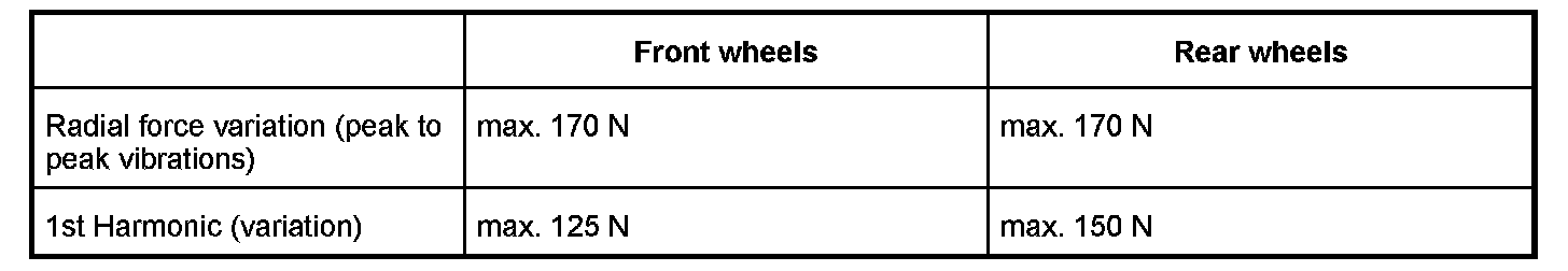 A new tire must be fitted if the radial force variation cannot be reduced to the values listed in the table.