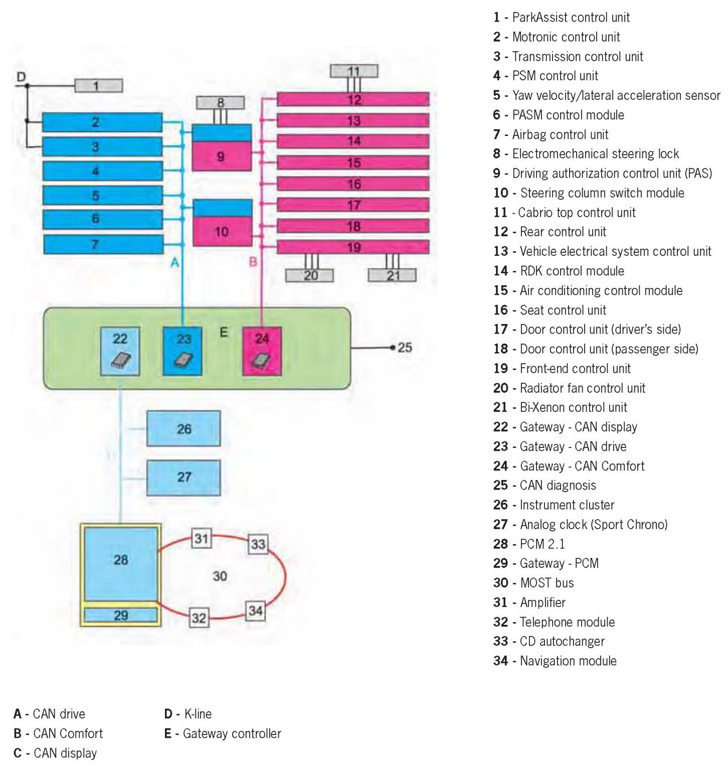 97 - Basic topology of the data bus systems in the Boxster (987 and Boxster S (987)