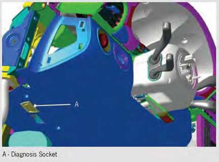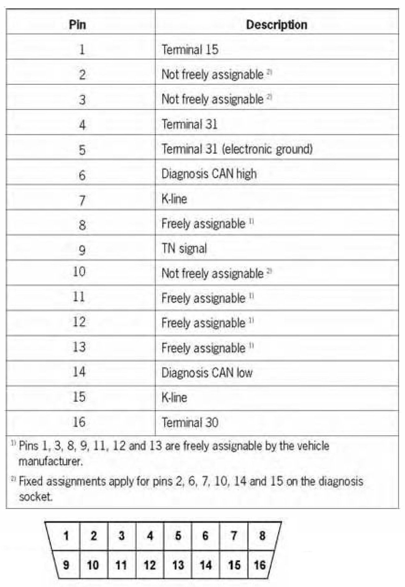 NOTE: The geometry and pin assignments of the diagnosis socket correspond to standards SAE J 1962 and ISO 15031-3.