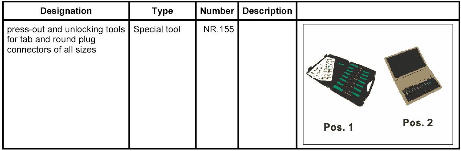 2. Position the press-out and unlocking tools for tab and round plug connectors of all sizes NR.155 on the primary locking mechanism and lift the locking mechanism.