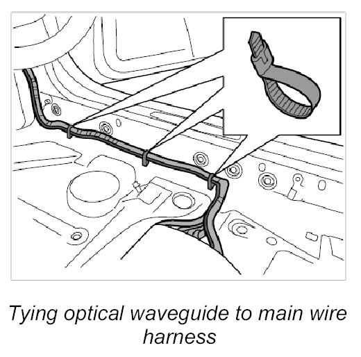 2. Route the new optical waveguide along the main wire harness, guide it through the existing cable ducts and tie it to the main wire harness using tie-wraps.