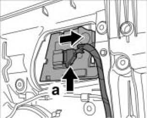 1. Release -arrow a- and pull off connector.