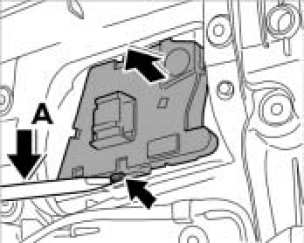 2. Lever off switch for power windows at the locking tab -arrow- (-arrow A-) and remove it.