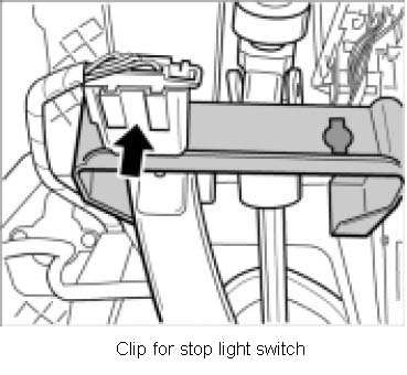 3. Remove the holder for the stop light switch and unclip the connector -arrow-.