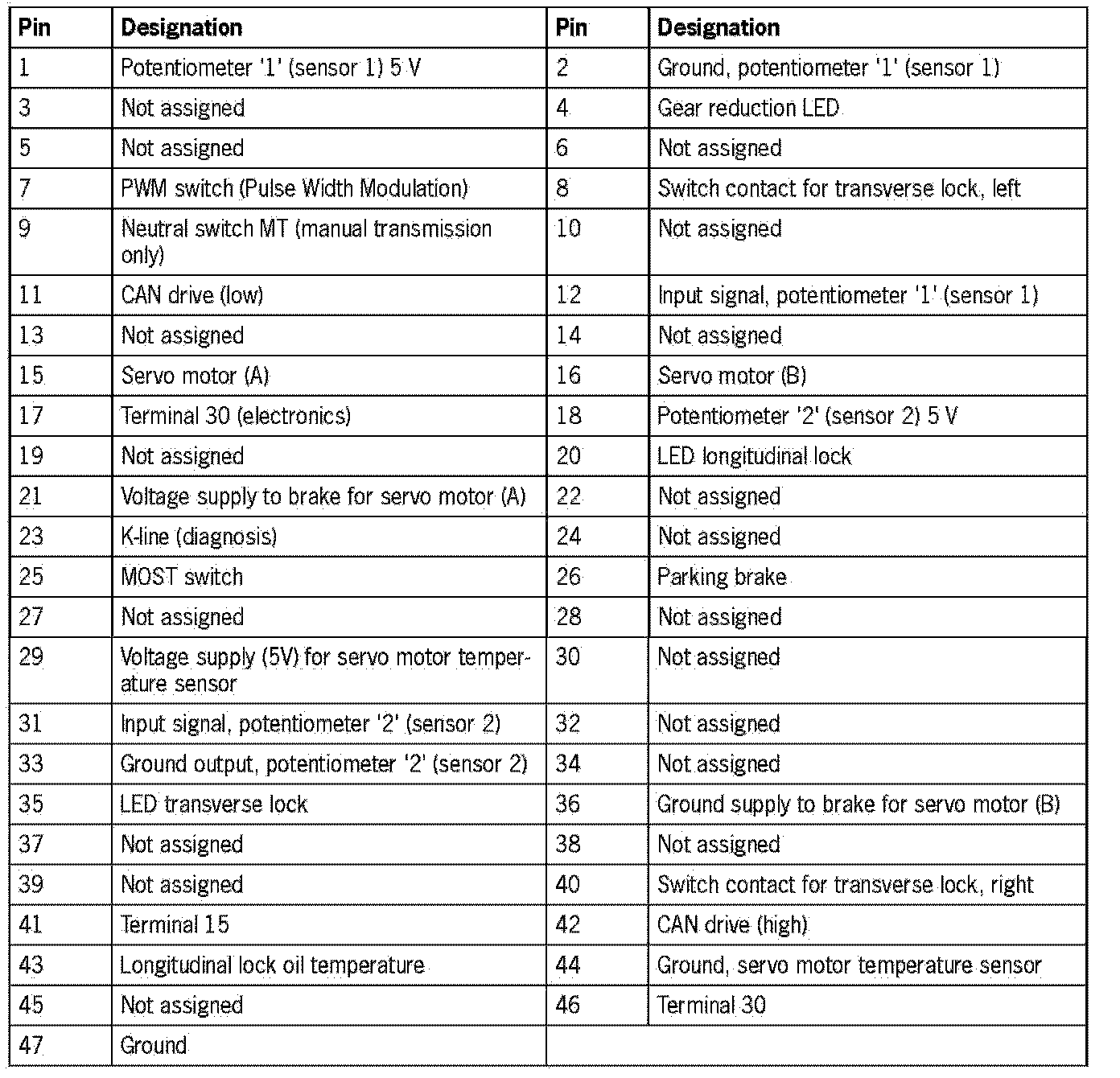 Connector assignment - transfer box control unitPlug '47-pin'