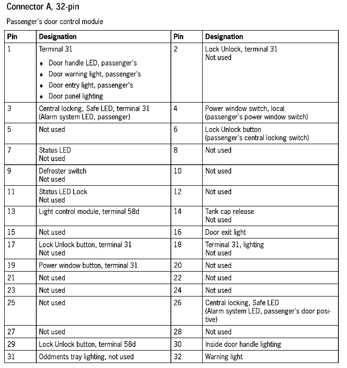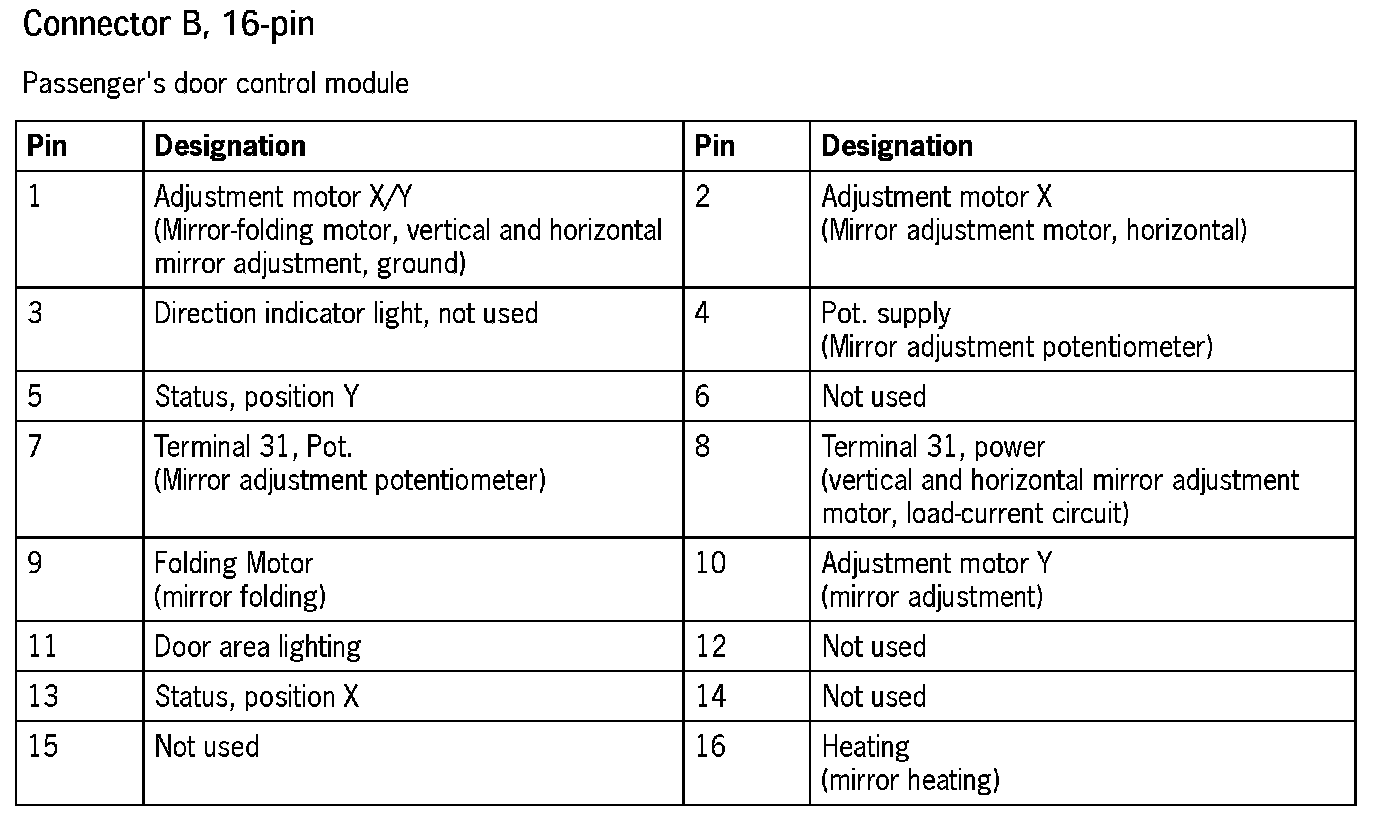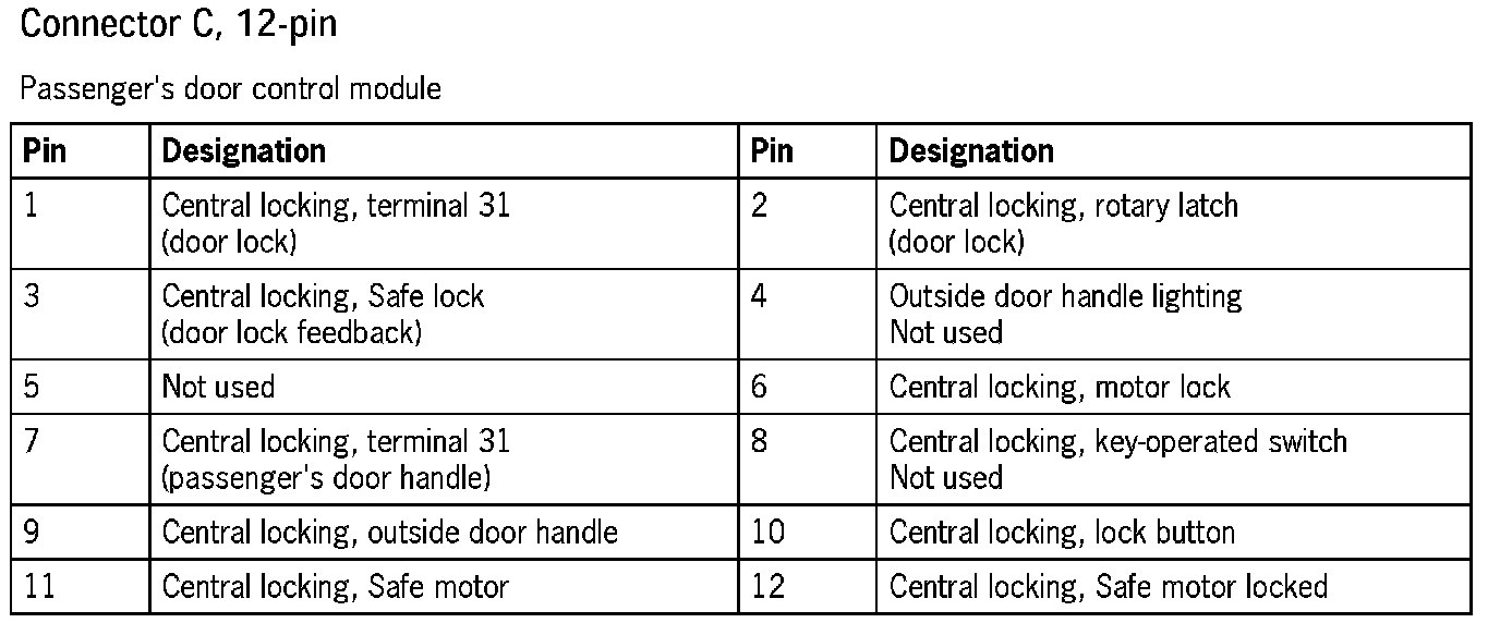 Connector Assignment, Passenger's Door Control Module