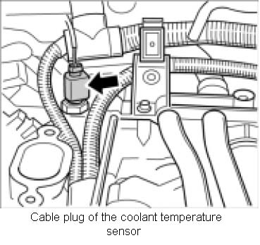 1. Pull off cable plug of the coolant temperature sensor -arrow-.