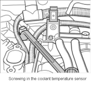 Note: Even when the coolant has been completely drained, coolant emerges from the open bore on the coolant temperature sensor!