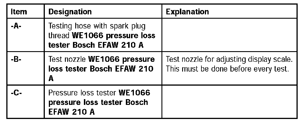 2. Position cylinder to be tested to ignition TDC and remove tool. The ignition TDC for cylinder 1 (and the remaining cylinders) can be tested using the "dead center finder" contained in the WE1066 Bosch EFAW 210 A pressure loss tester.