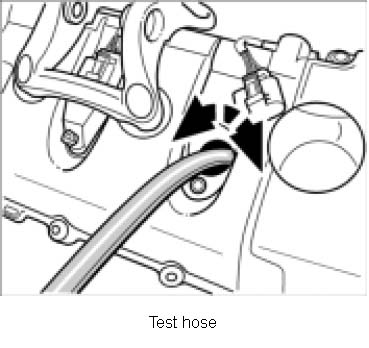 10. Remove the test hose once the test is complete and install the spark plugs.