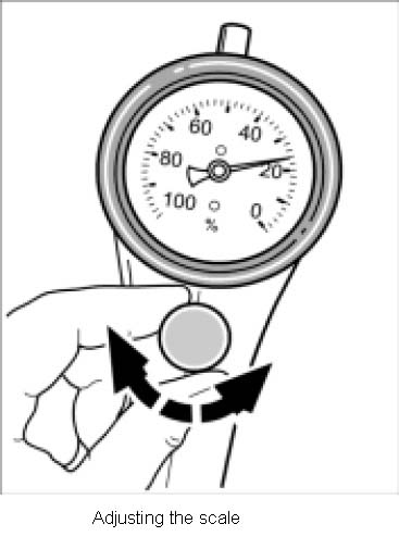 6. Turn the adjusting wheel until the scale pointer is at the "cal." marking or "23%".