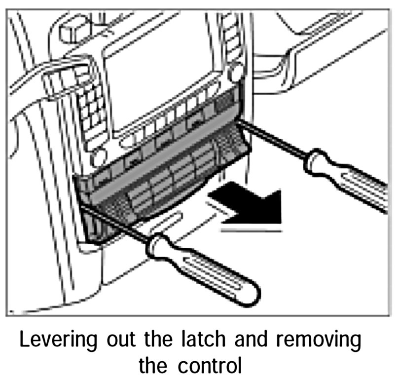 2. Use two screwdrivers to lever out the left and the right latch, then remove the control.
