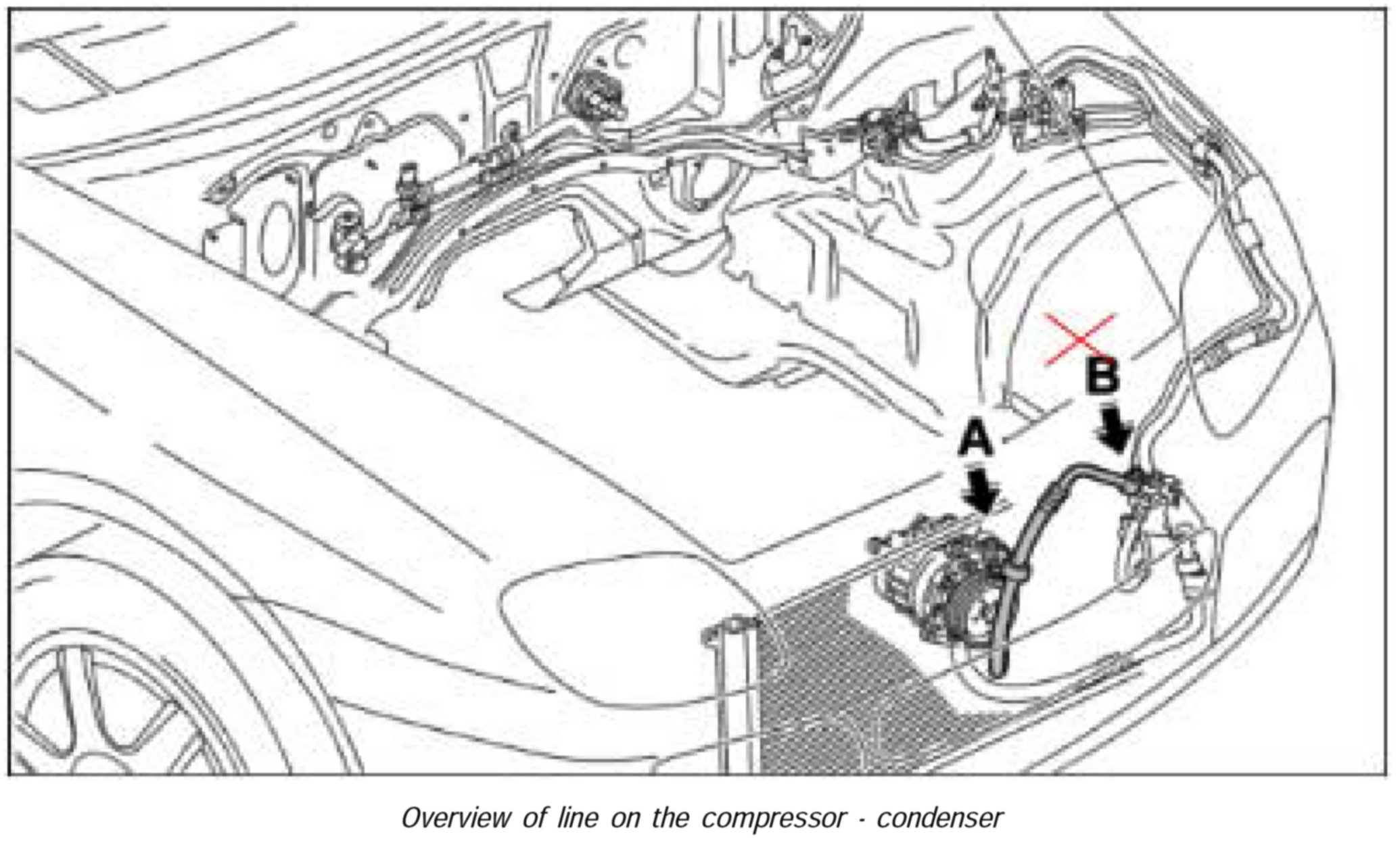 Removing the compressor-condenser line (A - B)
