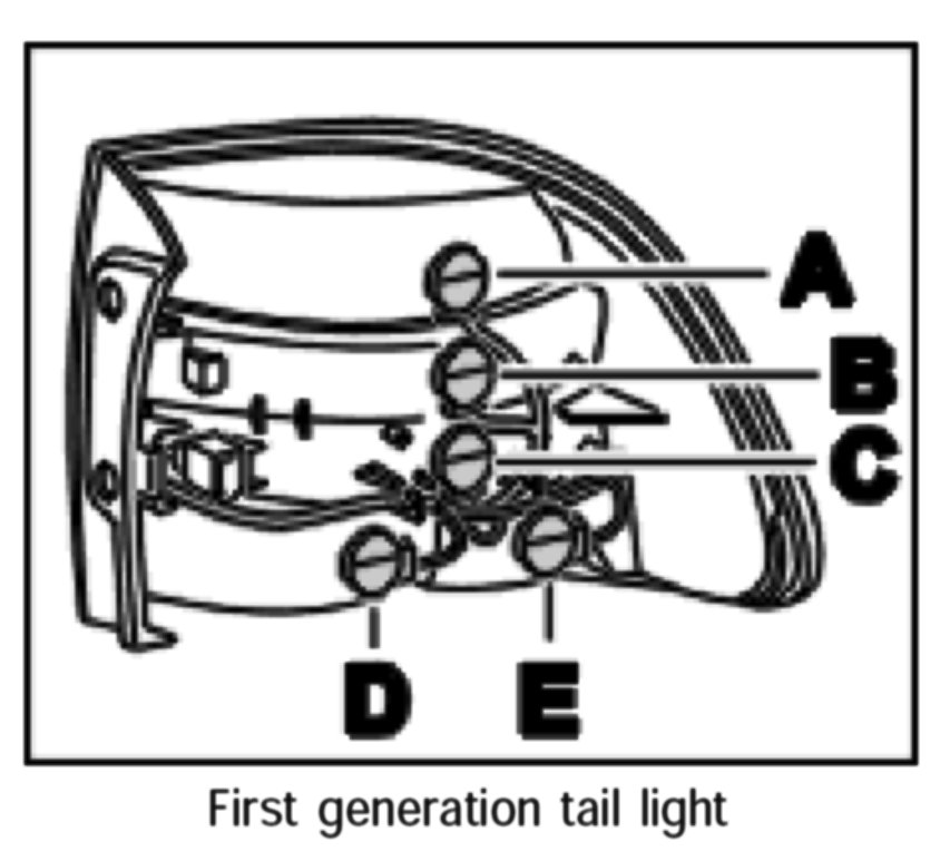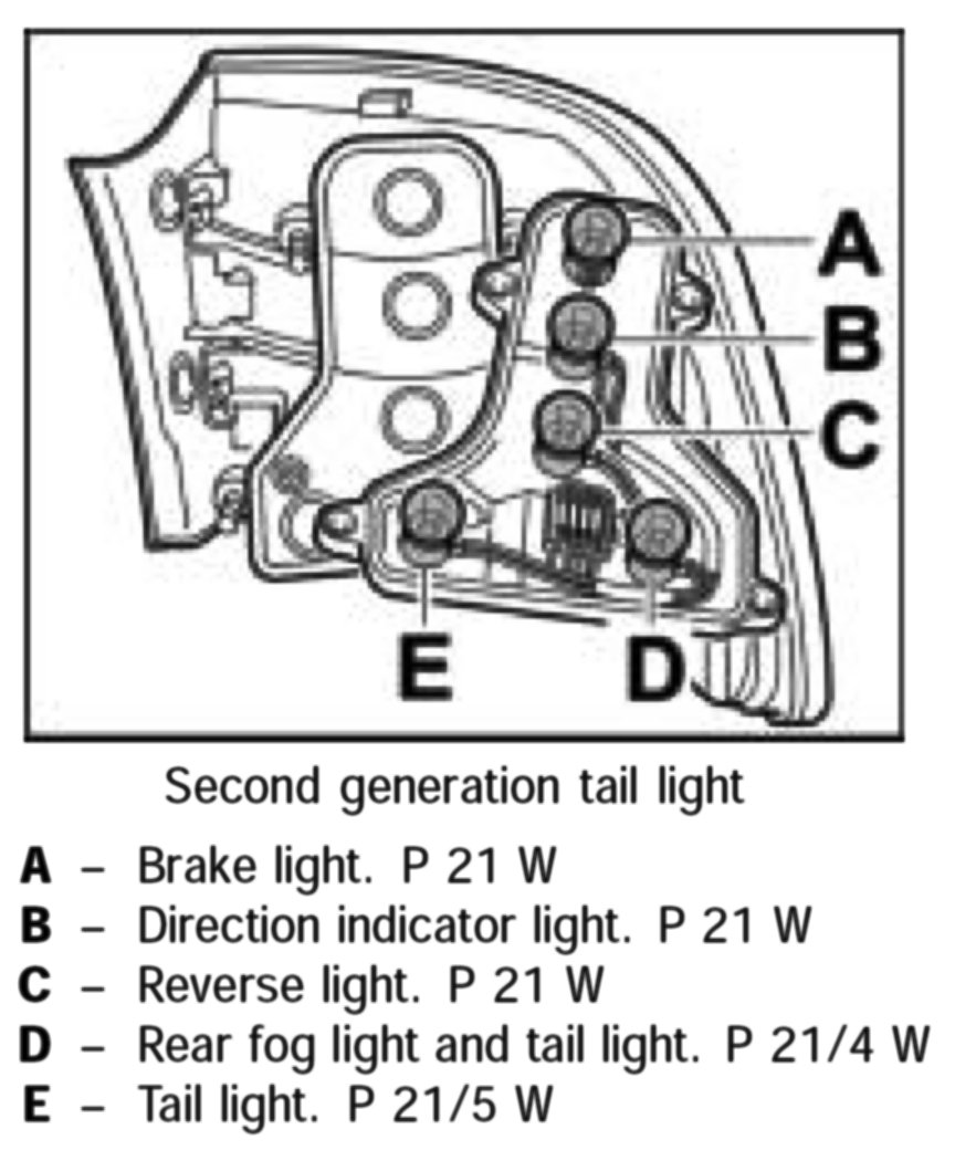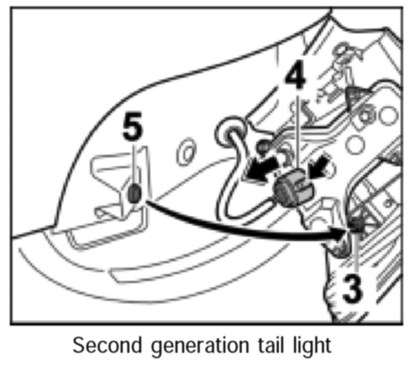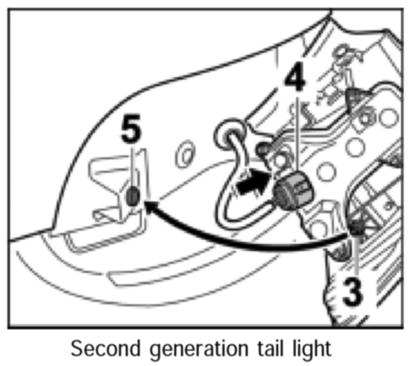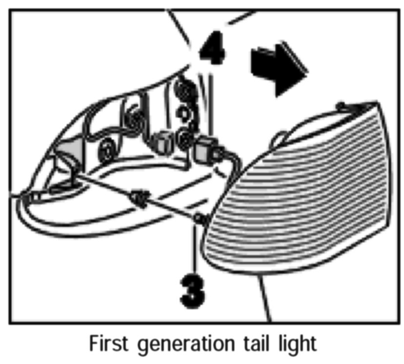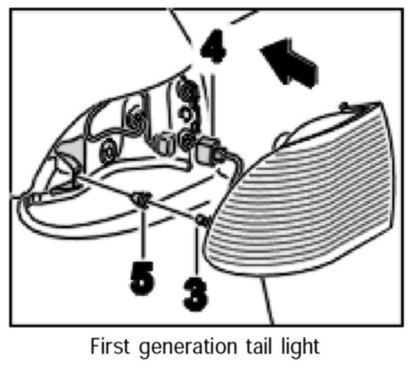 NOTE: As of January 2003, a second generation tail light is in use. When spare parts are needed, only the second generation tail light will be supplied. The tail light can be installed in older vehicles. During installation, the lead must be routed at the centre-of-vehicle side.