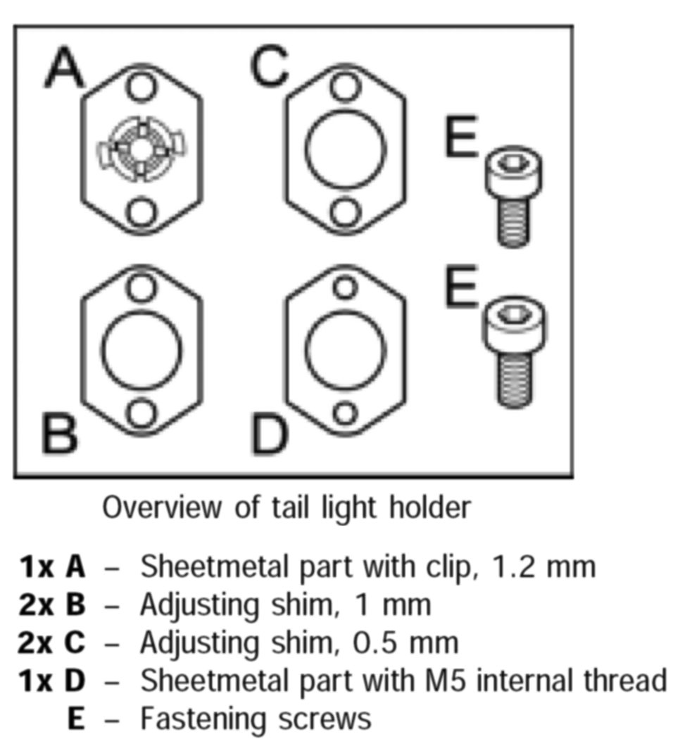 4.2. If necessary, remove tail light again, reposition lamp bracket or alter with adjusting shims.