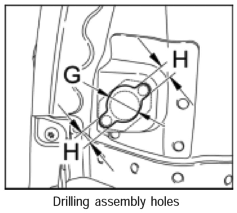 2.2. Use a centre bit to drill holes at dimensions -G- = 22 mm and -H- = 8 mm.