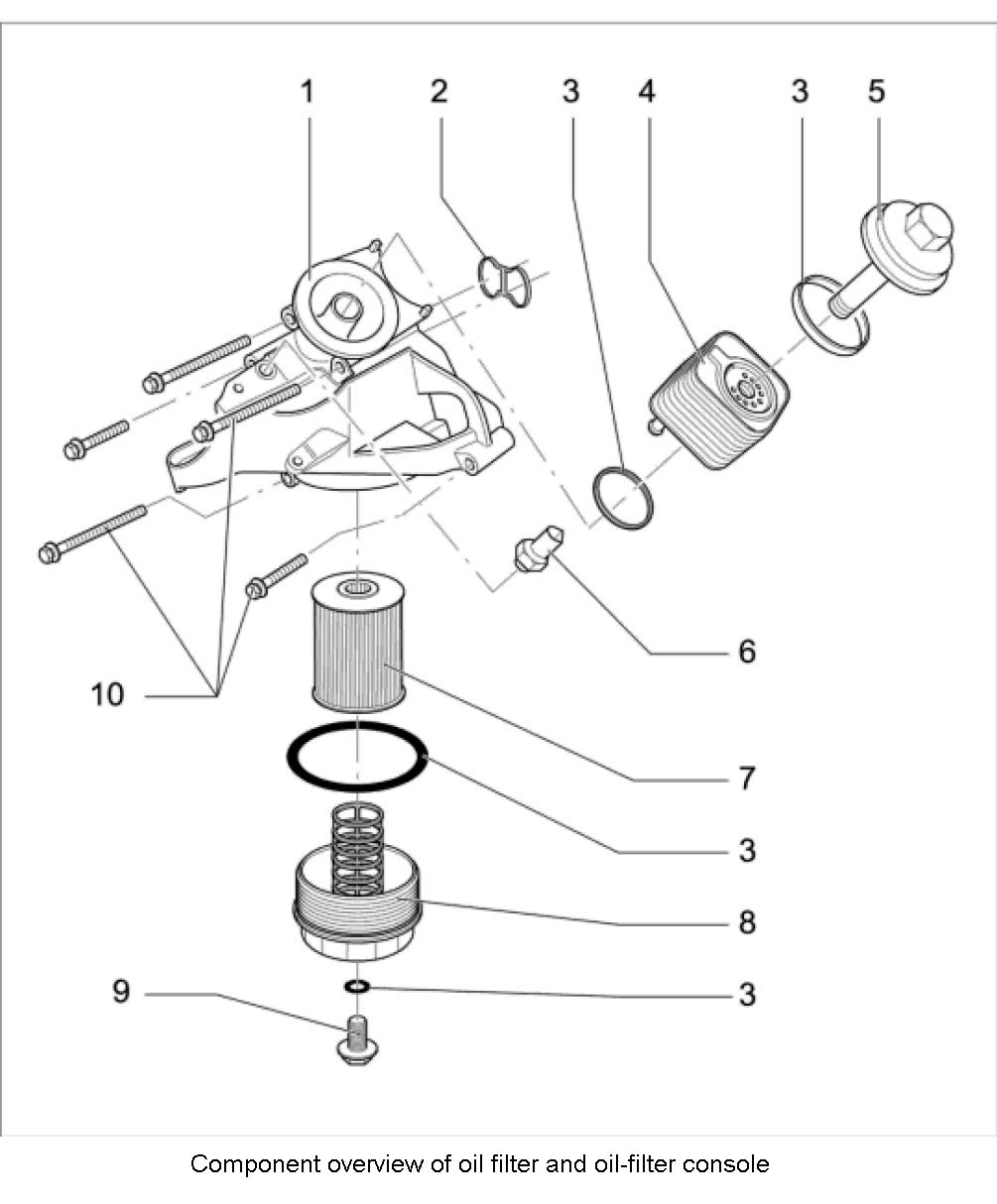 8. Clean the oil filter housing and replace the O-ring seal. Clean the oil filter housing thoroughly inside and outside and replace the O-ring. Carefully lever off the O-ring. The oil filter housing must not be damaged during this procedure.