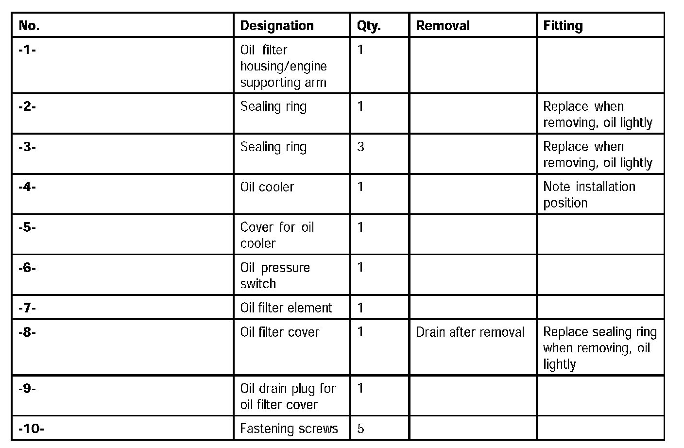 6. Remove the oil filter housing vertically downwards. Drain the remaining oil into a disposal container.