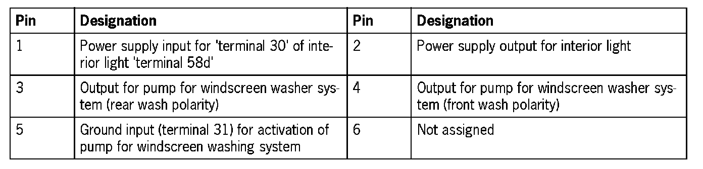 Connector assignmentNOTE: The plugs on the vehicle electrical system control module can only be pulled off and re-connected in a certain sequence.