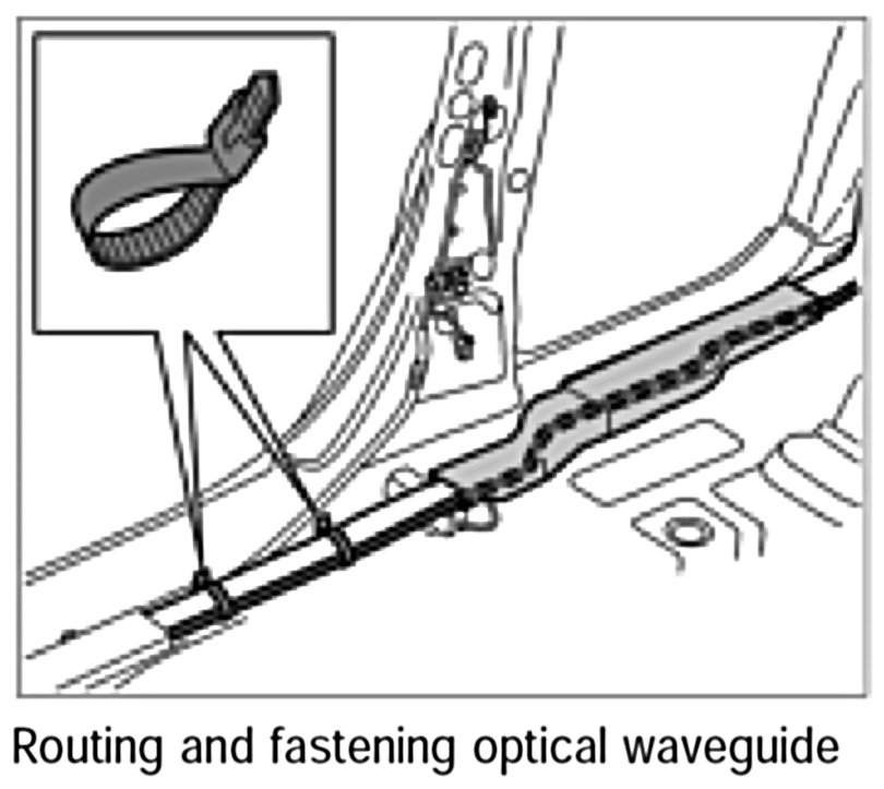 2. Route the new optical waveguide along the main wire harness, guide it through the existing cable ducts and tie it to the main wire harness using tie-wraps.