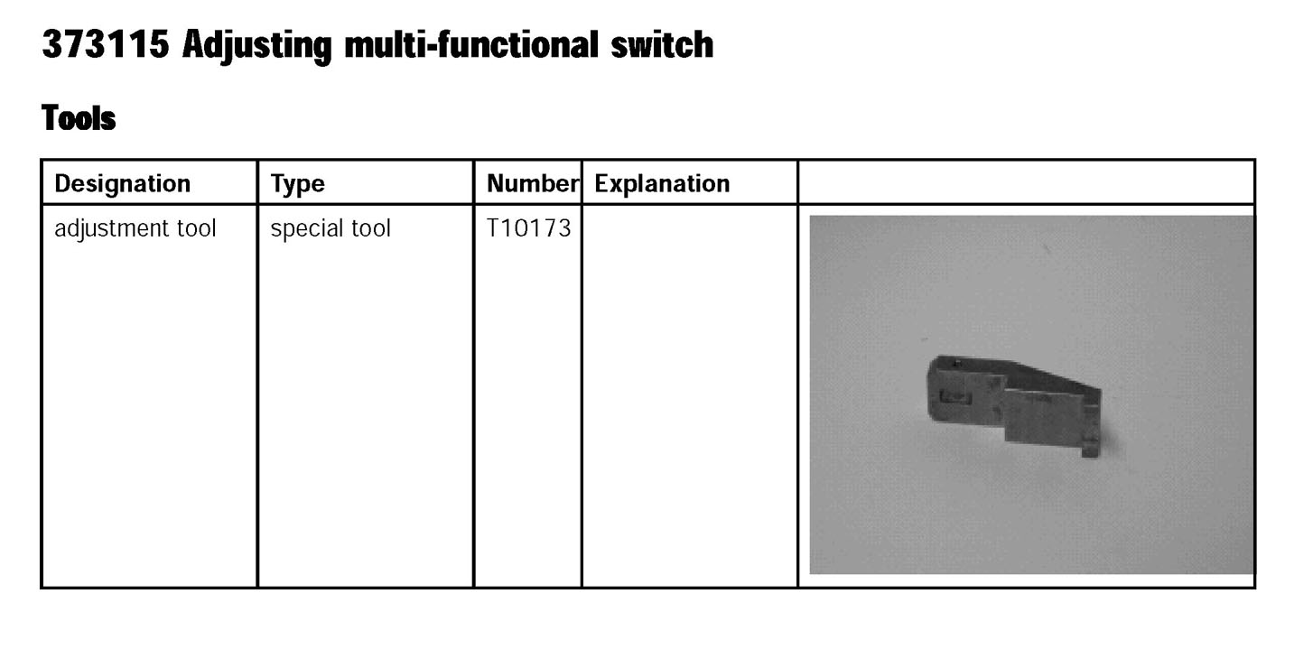 6. Position special tool adjusting tool T10173 on shaft and fix with screw -arrow-.