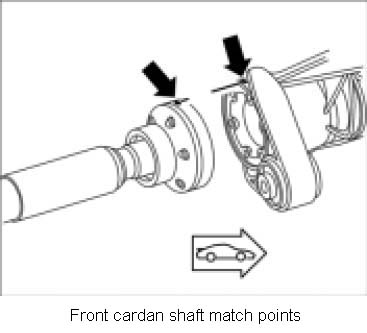 ^ The colour markings, match points -arrows-, on the cardan shaft and on the all-wheel final drive flange must be aligned. This will neutralise the residual imbalance of the components.
