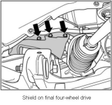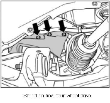 2. Remove three shield screws-arrows- on the all-wheel final drive.