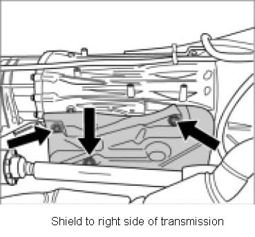 4. Remove shield on the transmission. To do this, unscrew three fastening screws -arrow-.