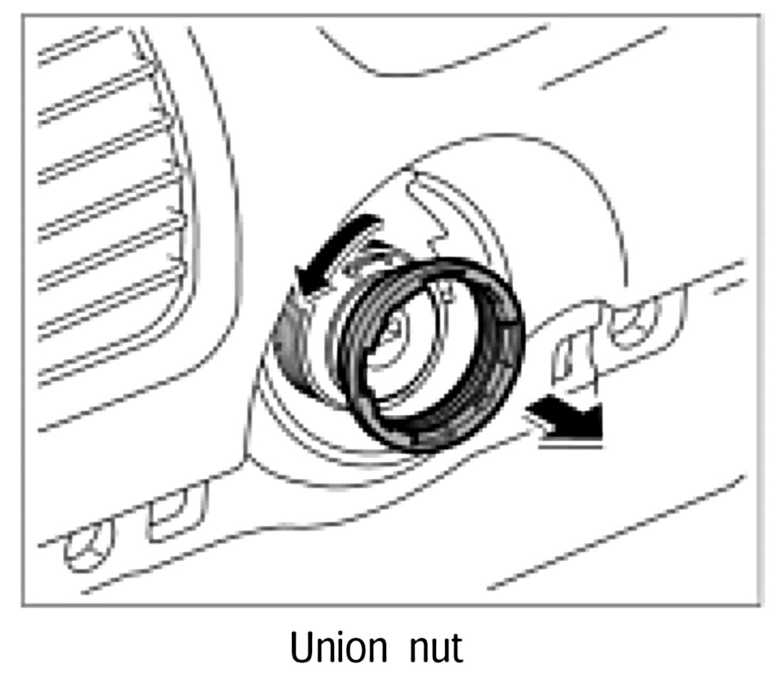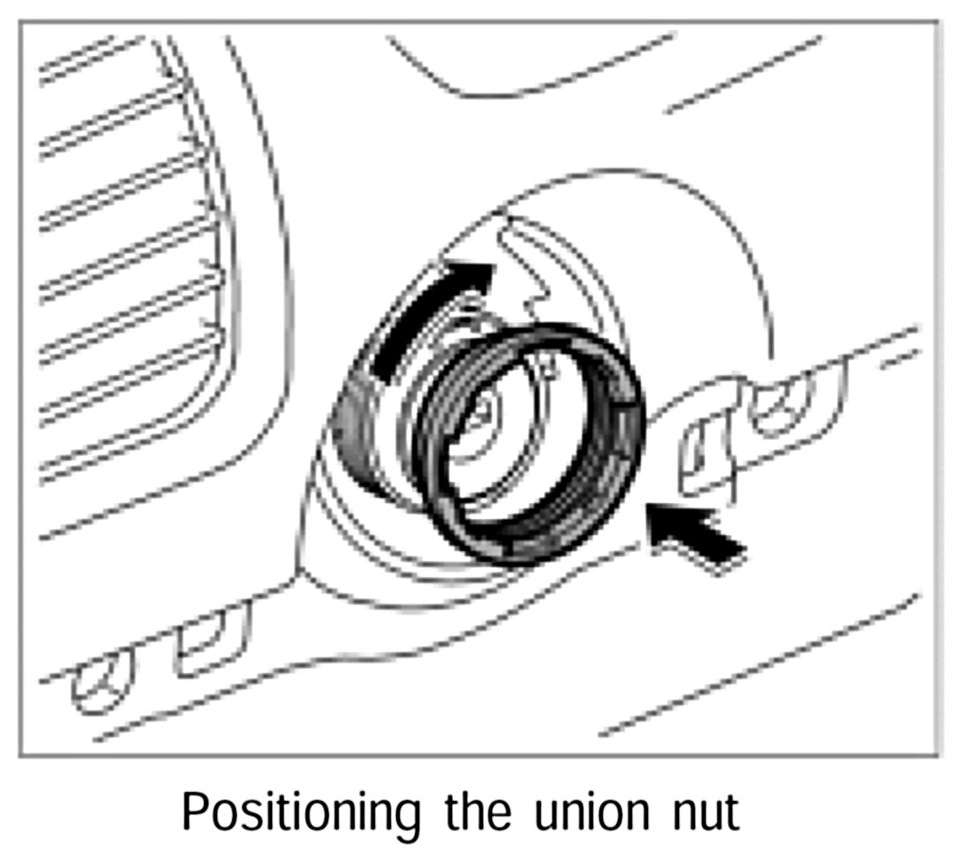 2. Position ignition starter switch in the dashboard. Position union nut, re-adjust switch and tighten union nut using wrench T10152. Tightening torque: 1 ftlb.