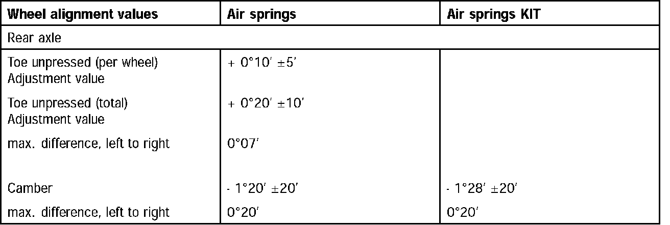 - The toe-difference angle value is also influenced by the vehicle height! For this reason the measured result must be evaluated accordingly! No action is necessary in the case of small deviations from the toe-difference angle required value, as long as the value to the right and the left is almost the same!