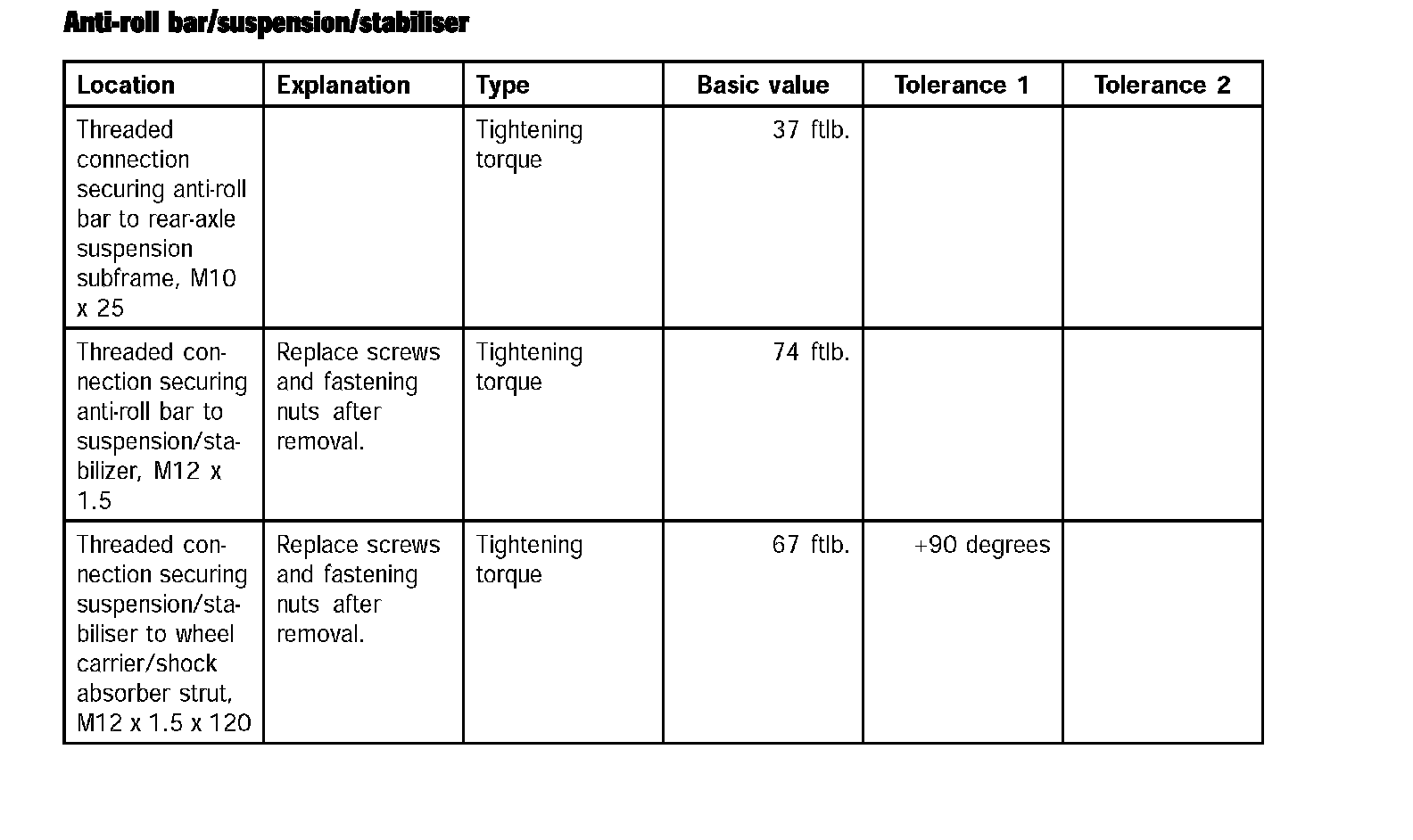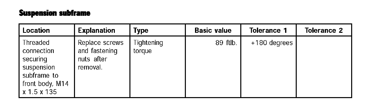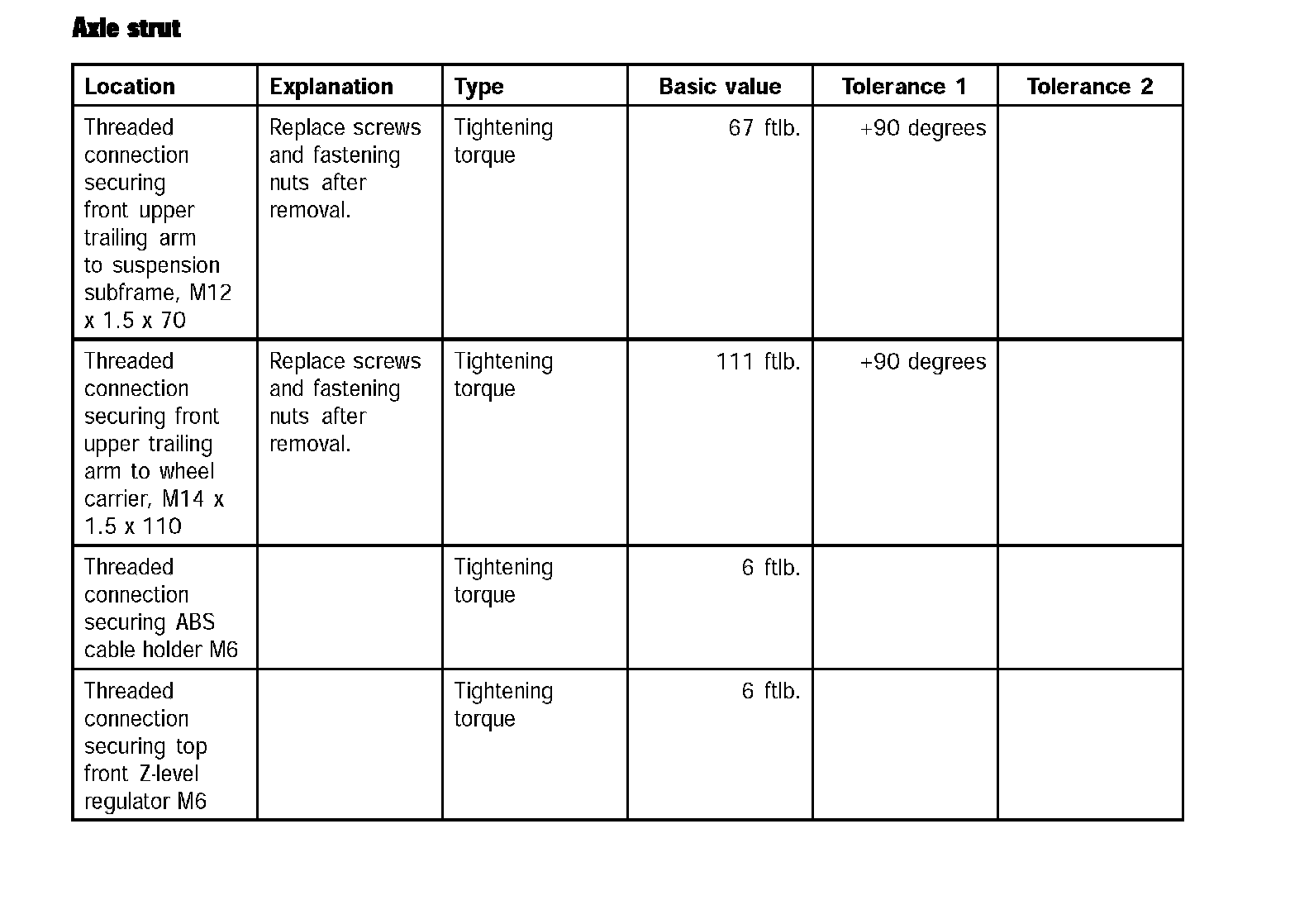 Rear Suspension/Tightening Torques For Rear Axle