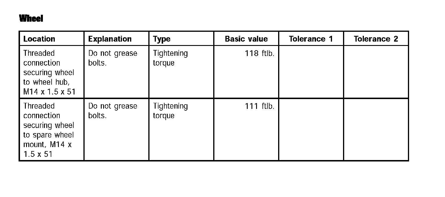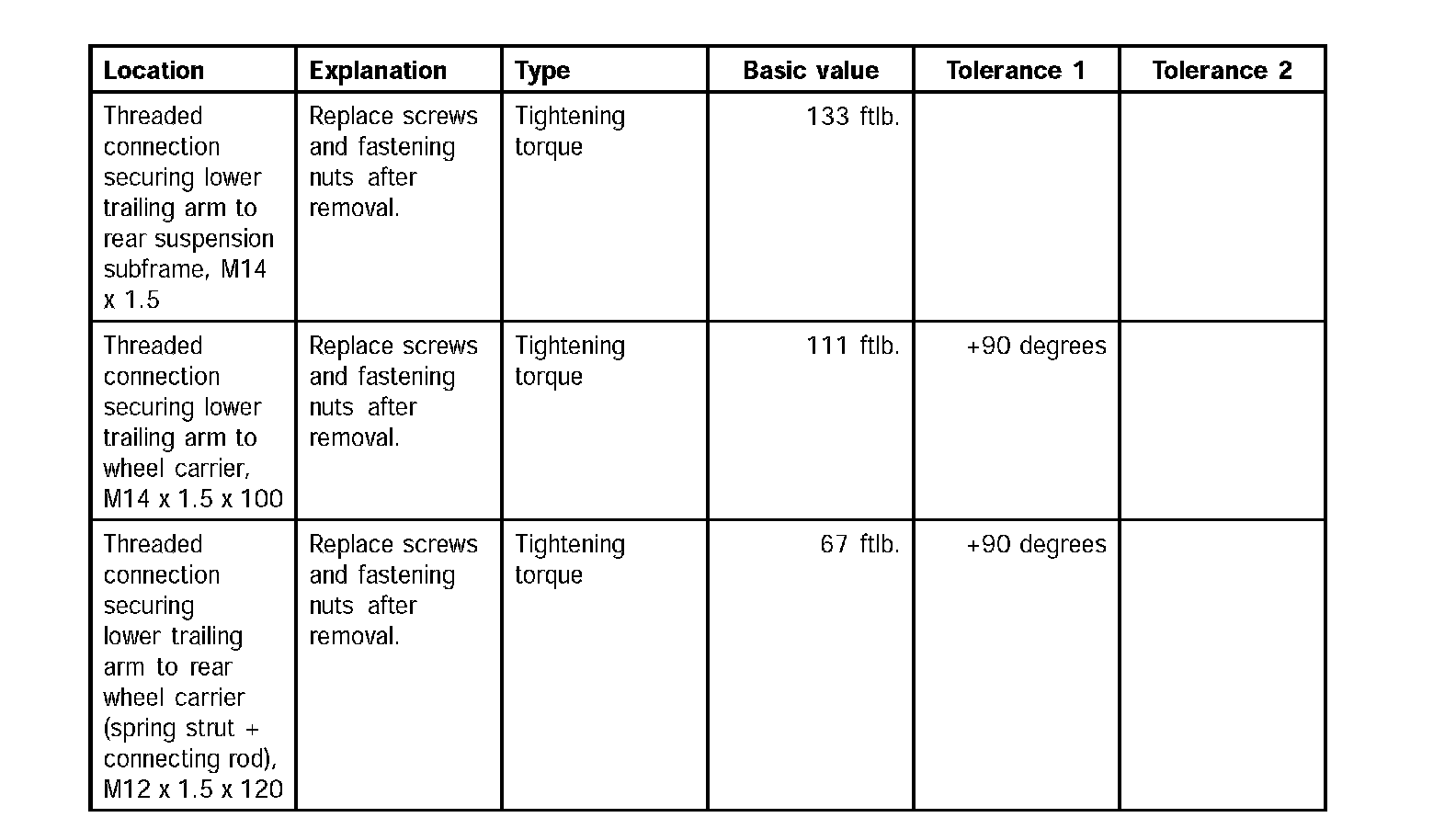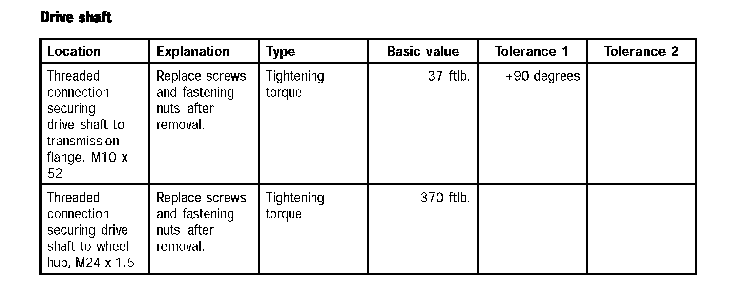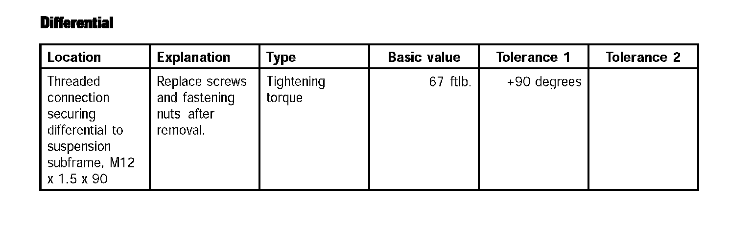 Tightening torques for rear axleTechnical values