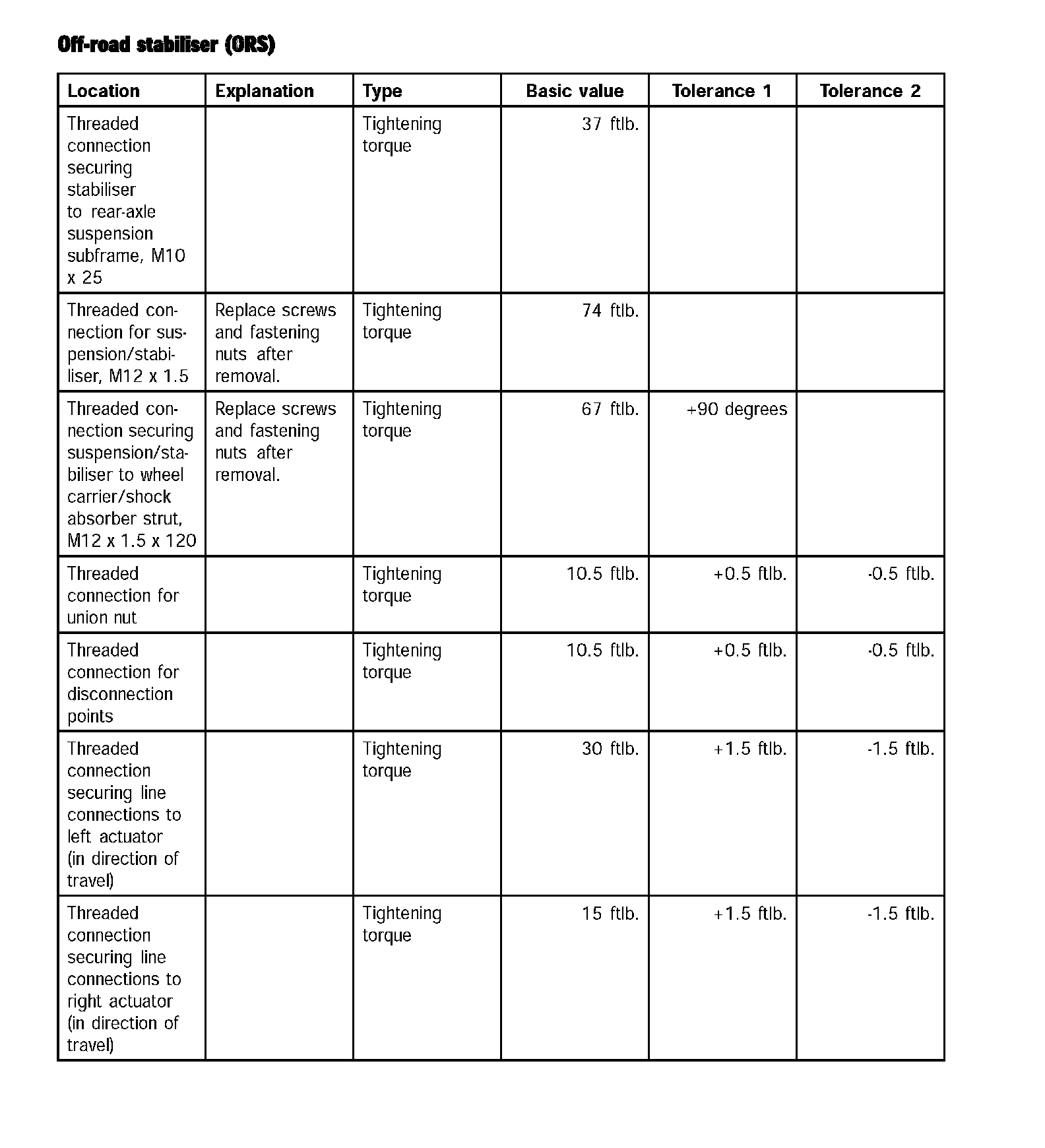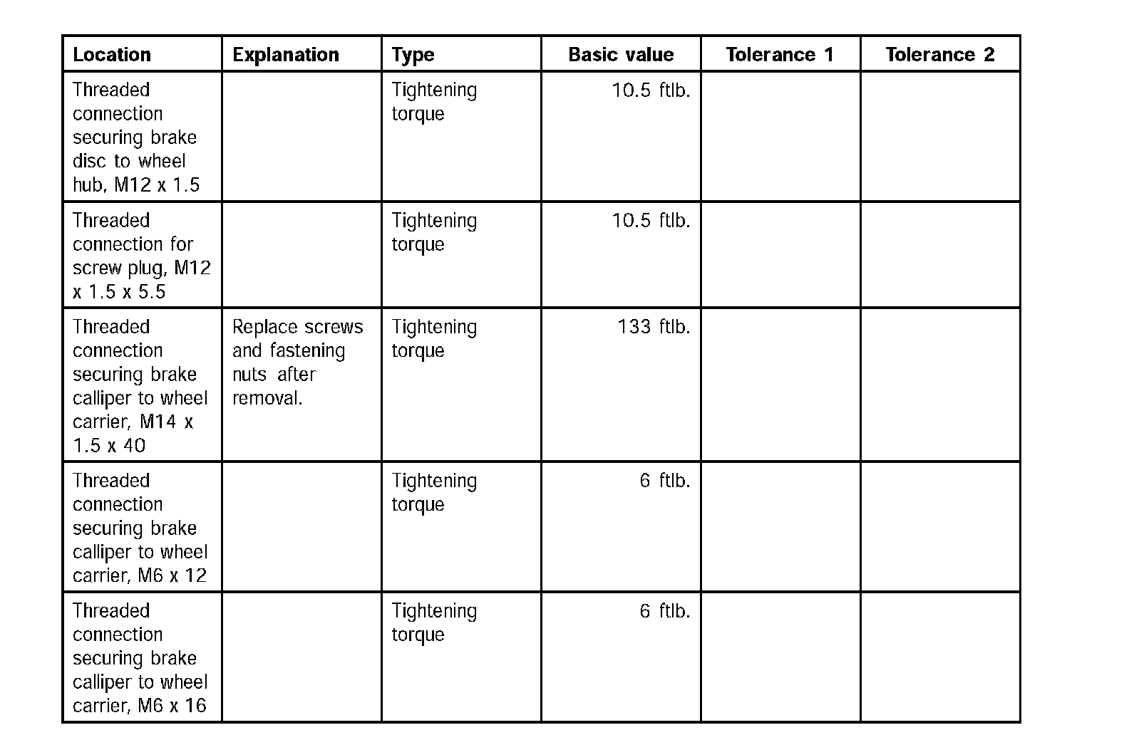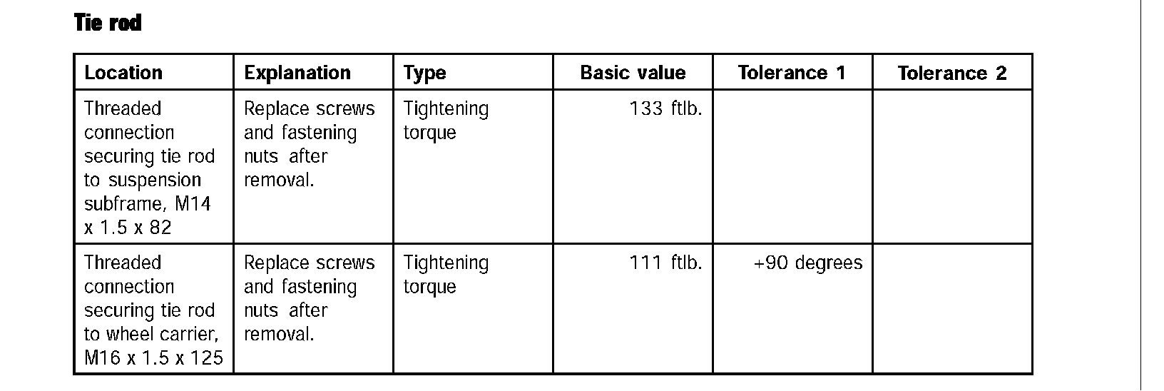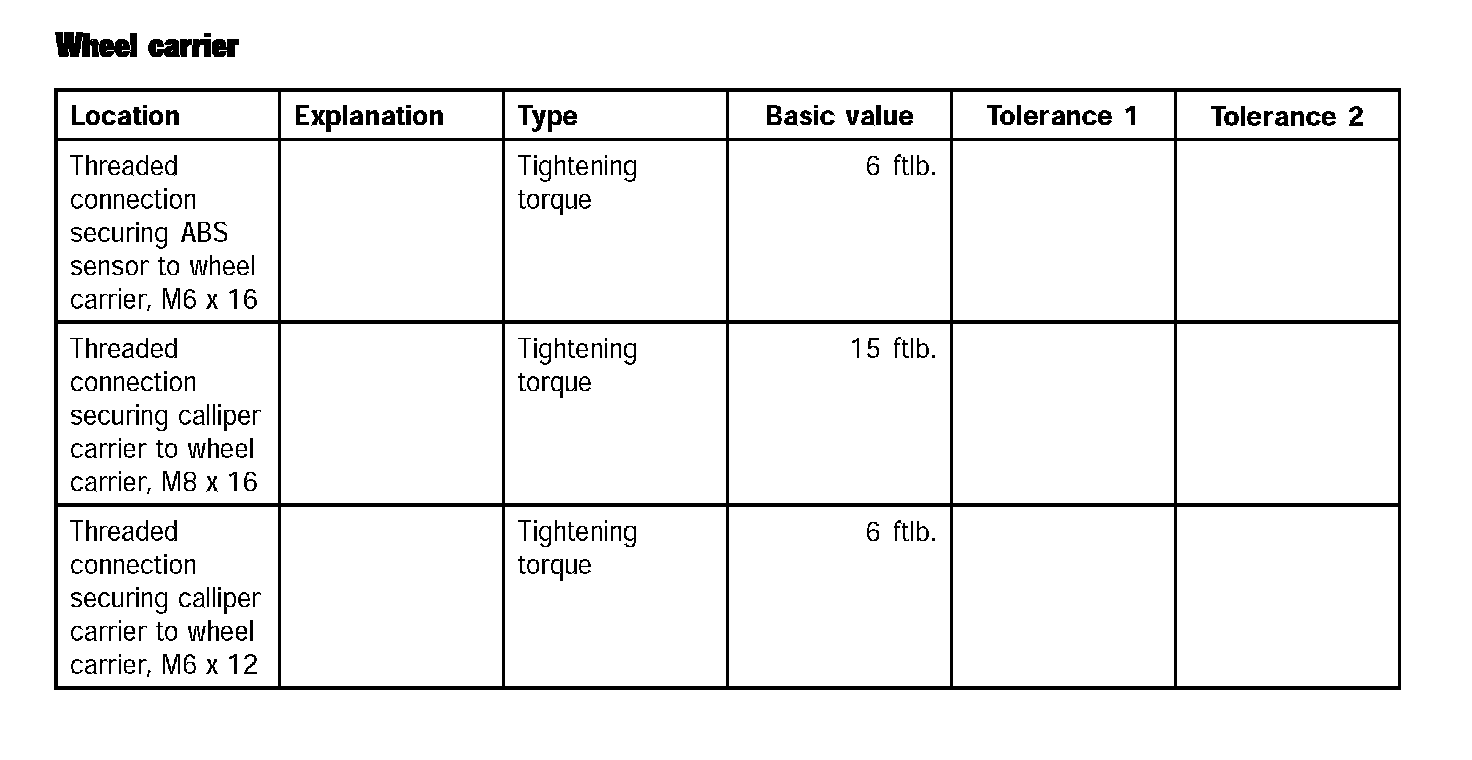 Tightening torques for rear axleTechnical values