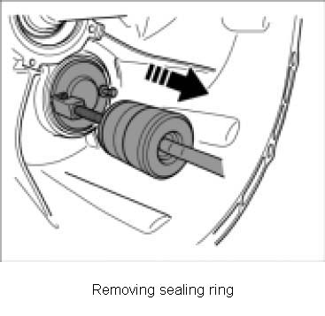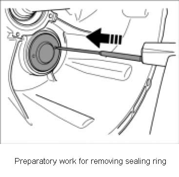 1. Drive two small holes -figure- -offset by 180 degrees -into the sealing ring.