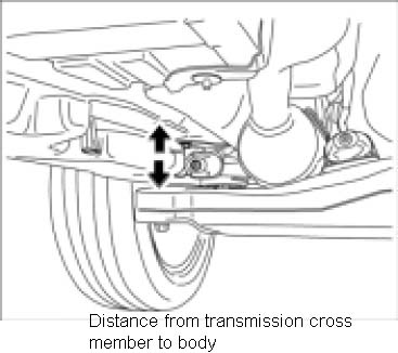 7. Lower transmission cross member by approximately 55 mm -arrow-.