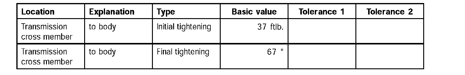 7. Screw in new fastening screws -A- for transmission cross member.
