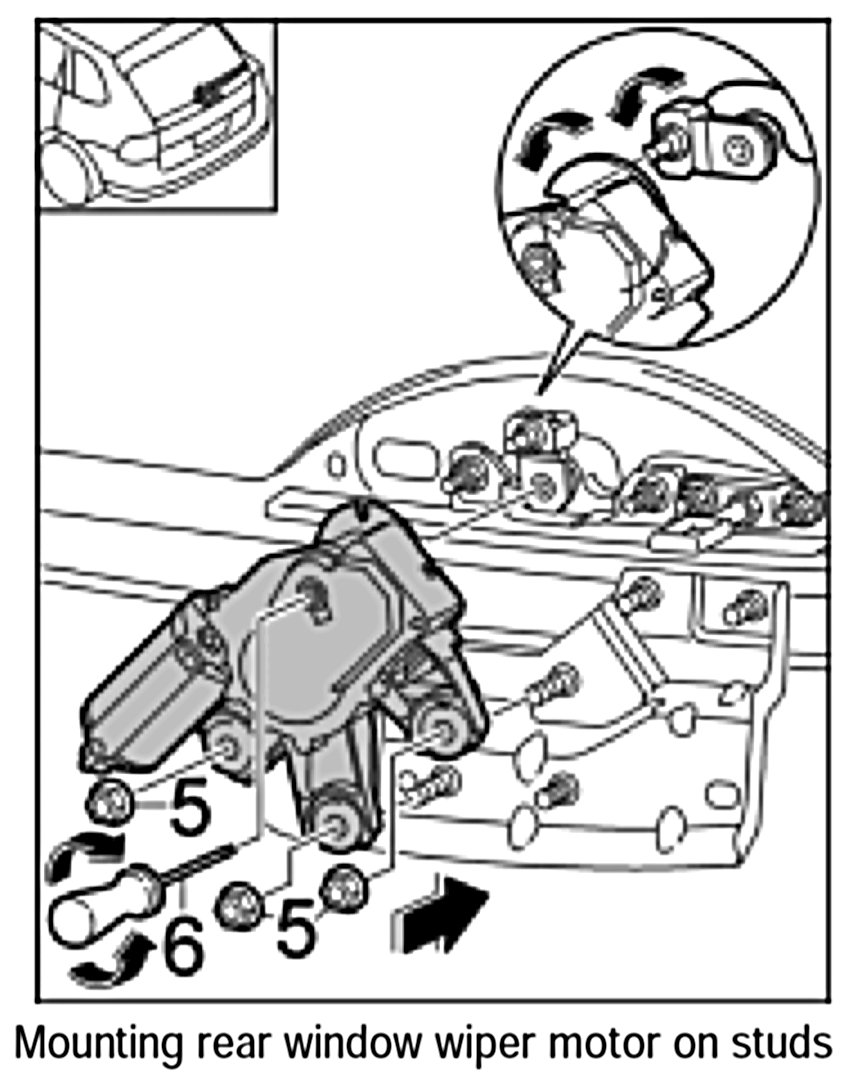 - In the event of any re-adjustment or exchange of rear window, rear lid or rear window wiper motor, the rear window wiper system must be set up again