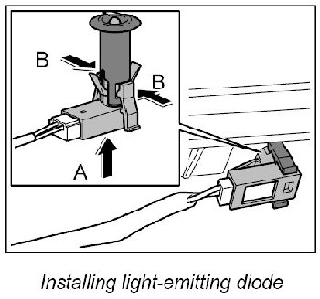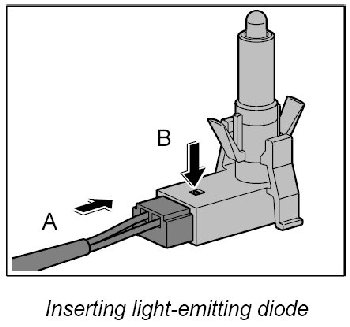 2. Press light-emitting diode into the housing -Arrow A- until the locking tabs are felt to engage -Arrows B-.